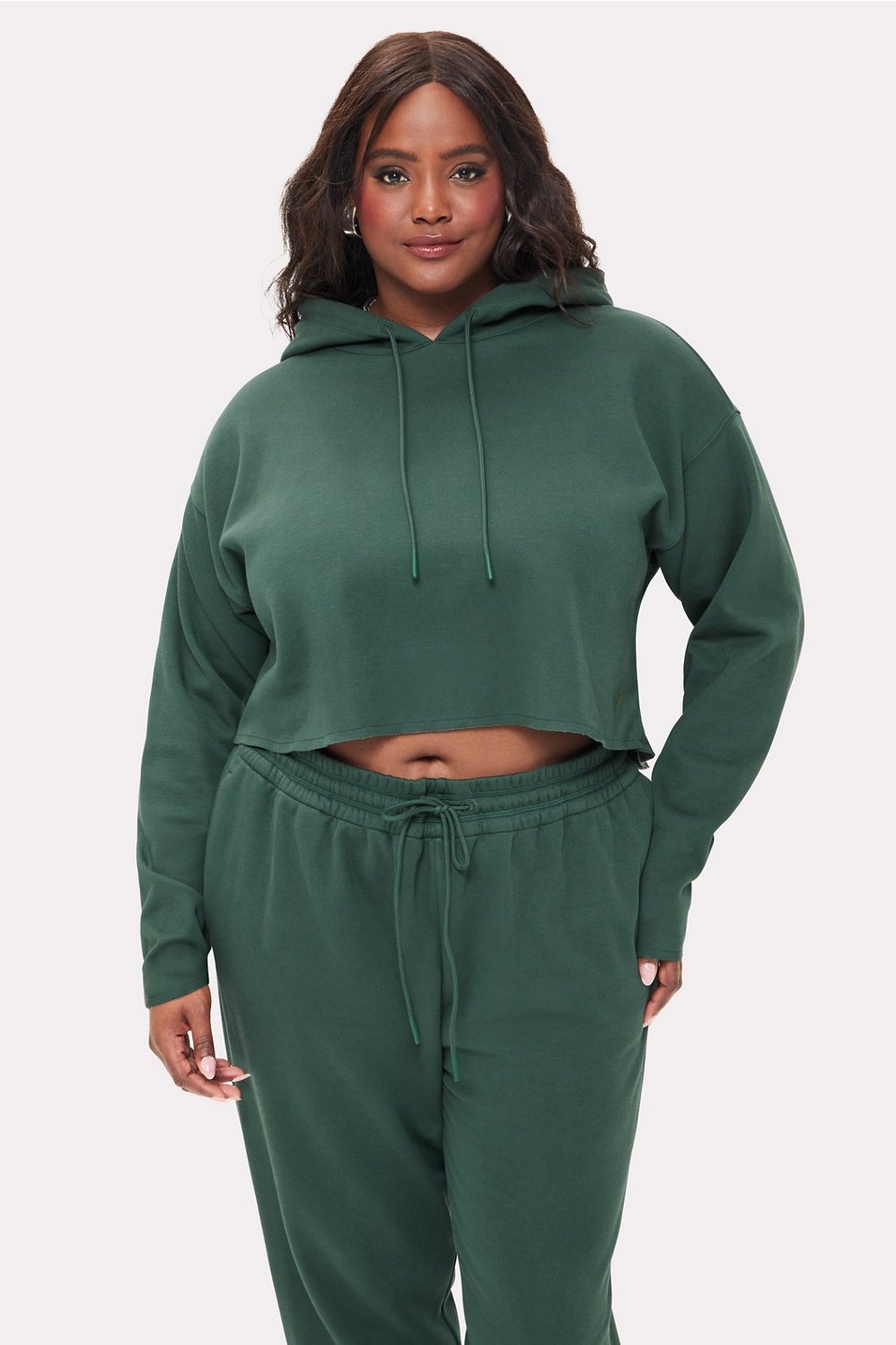 Level up your 'fits with this cropped hoodie in dreamy fleece so cozy, you won't want to take it off. Featuring a lined hood with an adjustable drawstring and raw edges for an effortlessly cool look. Pair with Cozy Fleece Joggers for a casual combo.