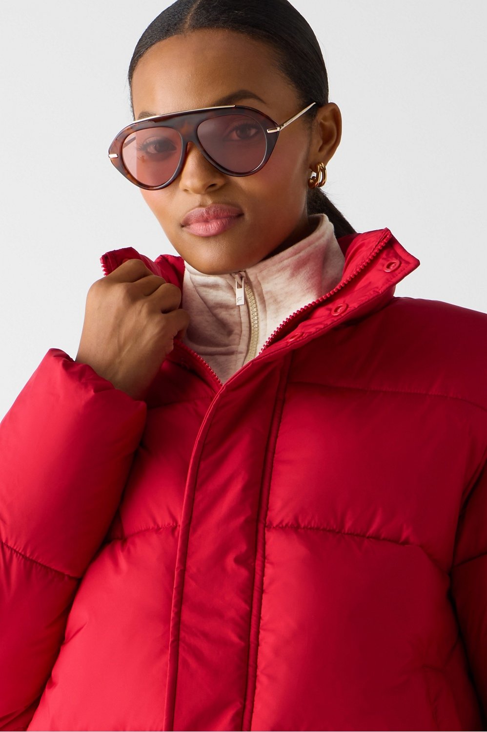 The ULTIMATE everyday layer. This must-have puffer offers a slightly longer silhouette to keep you warm and a true-to-size fit. You'll love the side and hidden interior pockets, along with the adjustable bungee at the bottom for added customization.