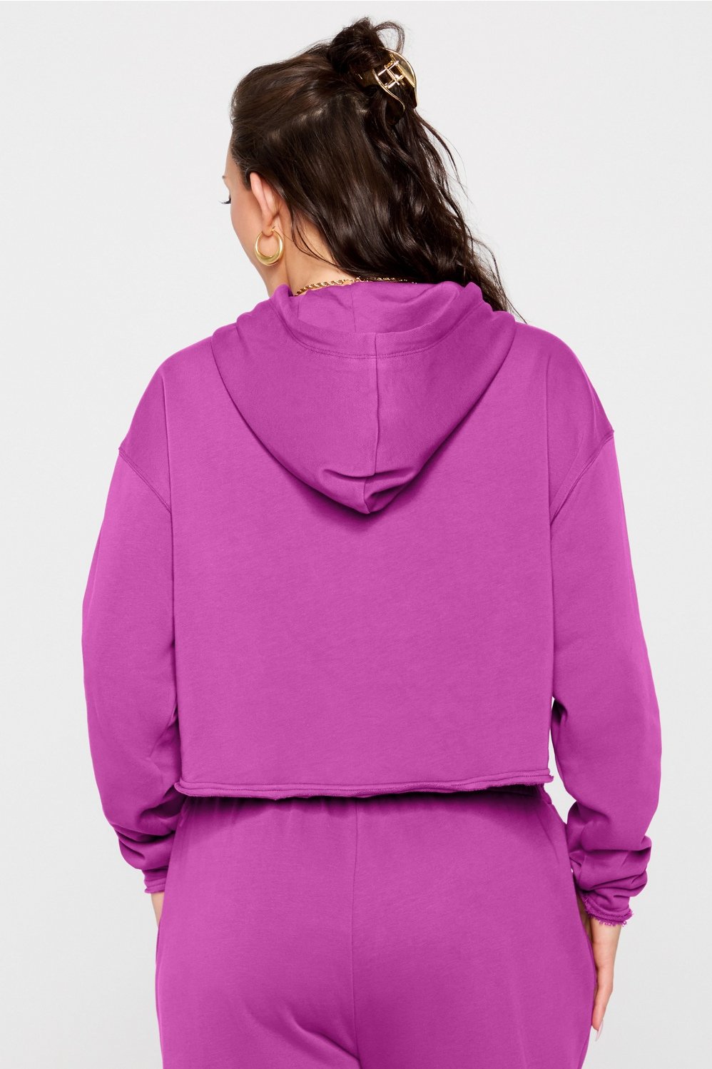 Minimal, modern, and made for daily wear. Designed with lightweight, recycled French terry fabric, this hoodie delivers a perfectly drapey fit, plus a cropped cut that highlights your waist.