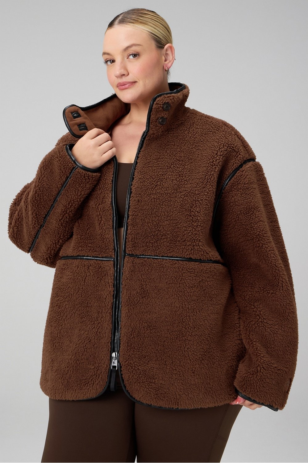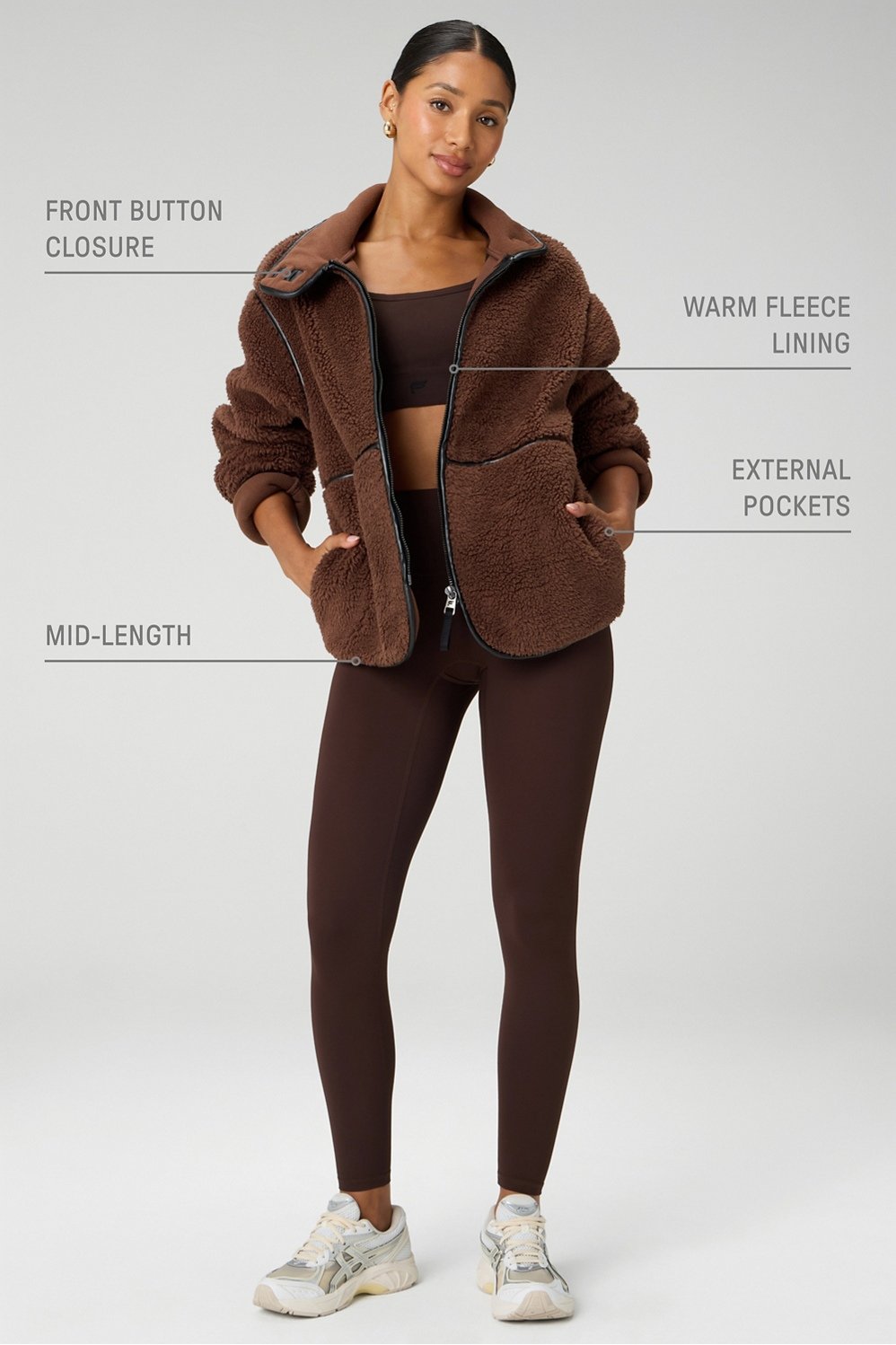 Your new teddy jacket just dropped and she— everything. With a mid-length, relaxed fit and shearling-inspired texture, this one brings the drama (hello, stacked button collar and faux leather trim) without sacrificing comfort. Double-sided fabric keeps it super soft inside, while the curved hem and button details keep it elevated on the outside. Cozy meets cool, all season long.