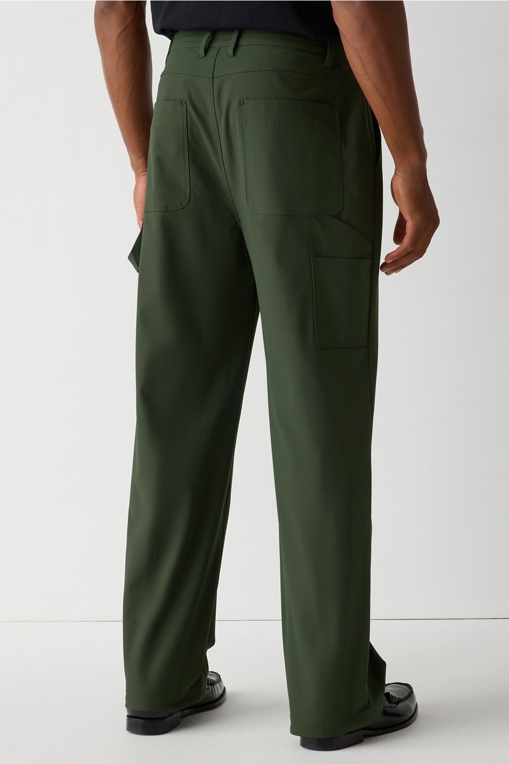 Utility, elevated. Built for the guy who puts in the work and wants to look sharp doing it. Made with our signature Don RepelKnit fabric, this pant is polished, wrinkle-free, and ready for anything. The relaxed baggy fit, straight leg, and belt loops keep it classic, while carpenter details like utility pockets and a hammer loop add function and grit.